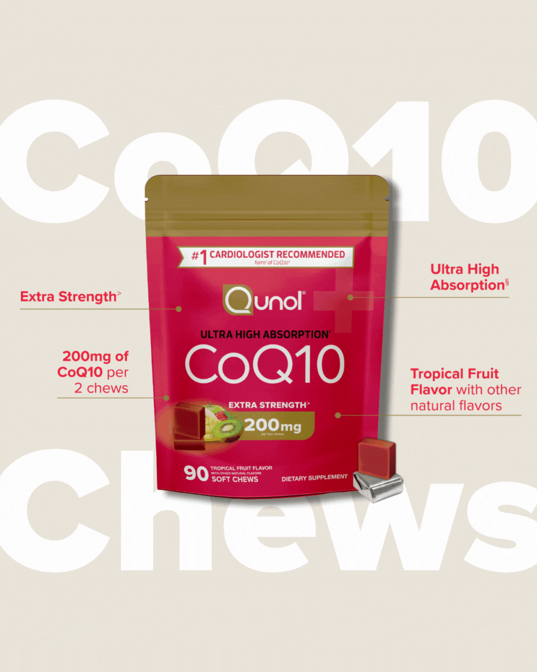 The Chews product launch was all about leaning into Qunol’s refreshed visual direction—anchored by the new internal tagline, “Qunol adds color to your years.” The goal: celebrate the bright packaging and fruity flavors with equally vibrant creative.